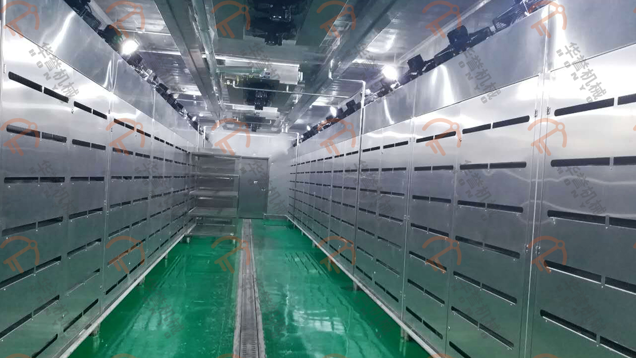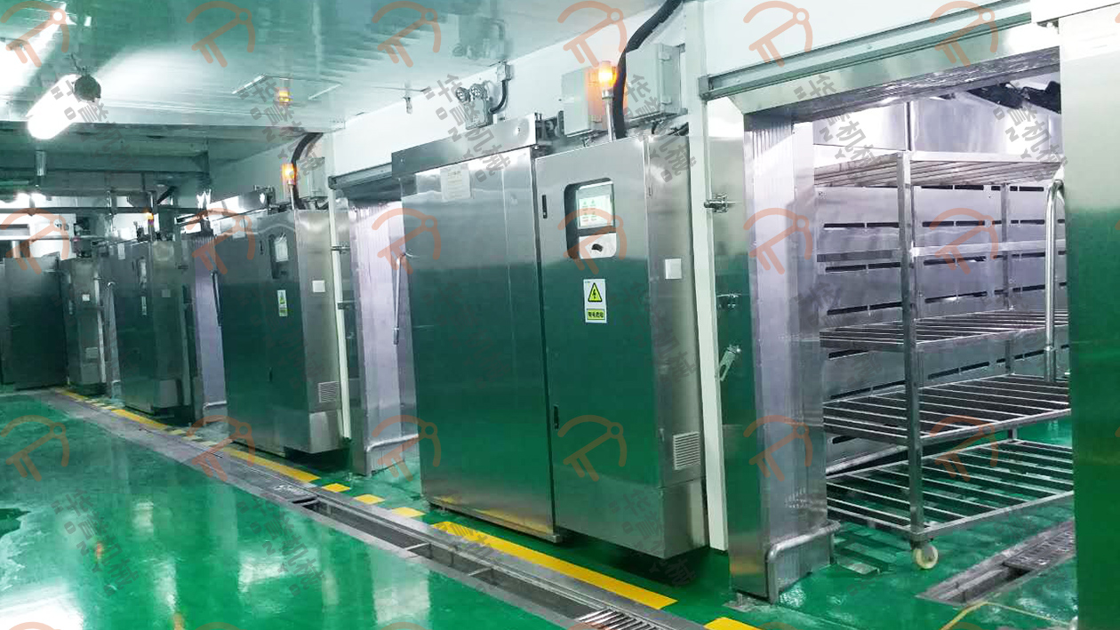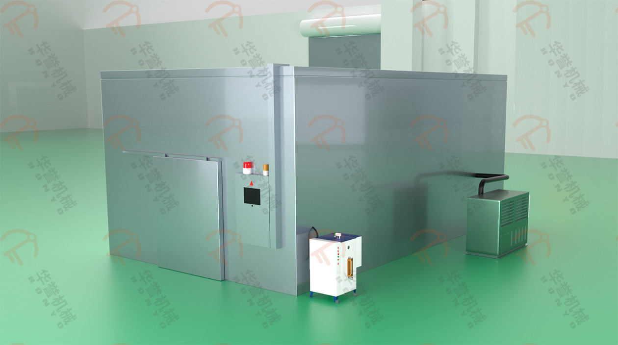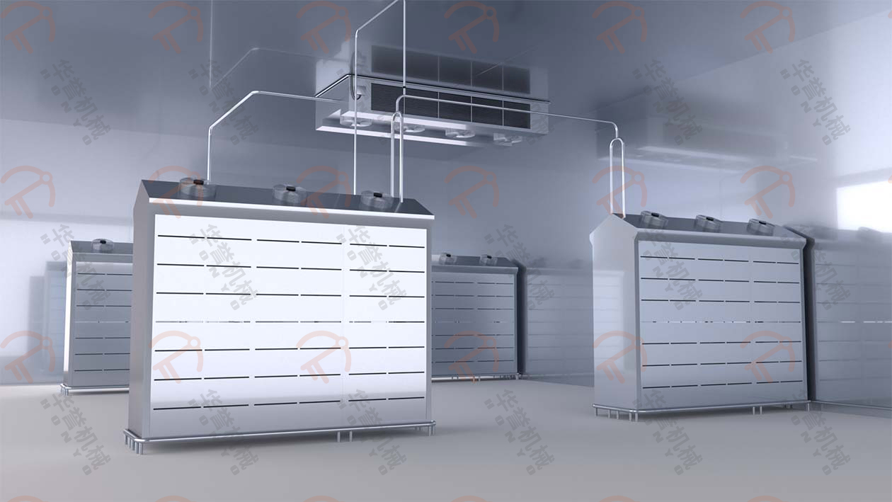 熱源有水蒸汽,電蒸汽發(fā)生器等多種方式。基本為通過管路把熱量傳導進解凍間內。另有輔助加濕方式:霧化加濕,通過加壓將水霧化結合風循環(huán)均勻的分散至設備內部。