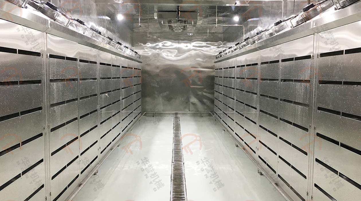 解凍間保溫效果良好,標準解凍間保溫為外噴涂彩鋼內304不銹鋼聚氨酯板材,中間自熄陽燃型聚氨酯夾心隔熱板,庫板厚度100mm。解凍間內有良好的排水設施,方便解凍過程中結露水及時排出,后續(xù)解凍間衛(wèi)生清理。